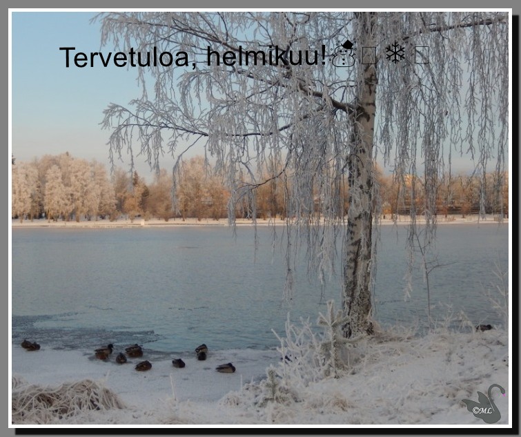 On keskitalven aika. Yleensä tähän aikaan on pakkasta ja lunta, kuten kuvassa muutaman vuoden takaa helmikuun alussa. Nyt Turussa nurmikko vihertää ja lämpötila ollut useita päiviä plussan puolella. Mahtaako lumitalvea tänä vuonna tullakaan?