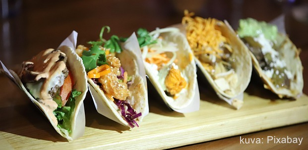 Tortilla on mukava nautittava myös vaikka pienissä illanistujaisissa, joissa tarjolla on monenlaisia täytteitä ja jokainen saa koostaa niistä oman makunsa mukaisen kokonaisuuden.
