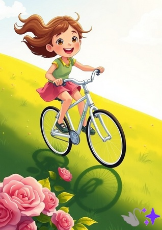 Kun olin pieni, olin paljon Mummini luona. Eräänä syntymäpäivänäni sitten sain polkupyörän. Se oli vanha aikuisten pyörä, jonka Pappa oli maalannut valkoiseksi. Olin kovasti innoissani pyörästä. Harjoittelin vähän ajamista siinä pihalla, kunnes päätin, että on aika ajaa alas jyrkkää mäkeä, joka pihasta lähti alas pellolle. Vauhtia vaan ja menoksi! No, ei siinä kaikki asiat tulleet mieleen; kuten esimerkiksi se, miten polkupyörä pysäytetään. Mäen alla oli iso ruusupuska ja siihenhän minä sitten ajoin täydellä vauhdilla. Hupsista. Oli sitten ruusunpiikkejä siellä ja täällä, mutta suurin huoleni oli, että olihan pyörä kunnossa. Olihan se. Seuraavaksi selvitin, miten se pysäyttäminen tapahtuu ja sitä piti harjoitella moneen kertaan ennen kuin sain luvan uudelleen ajaa itsekseni.