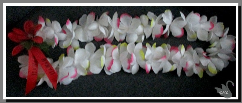 Kuvassa 25vuotta sitten Hawaiilta saamani lei-kukkaseppele. Se on toki tekokukista (*), mutta siihen liittyy merkittävä muisto: